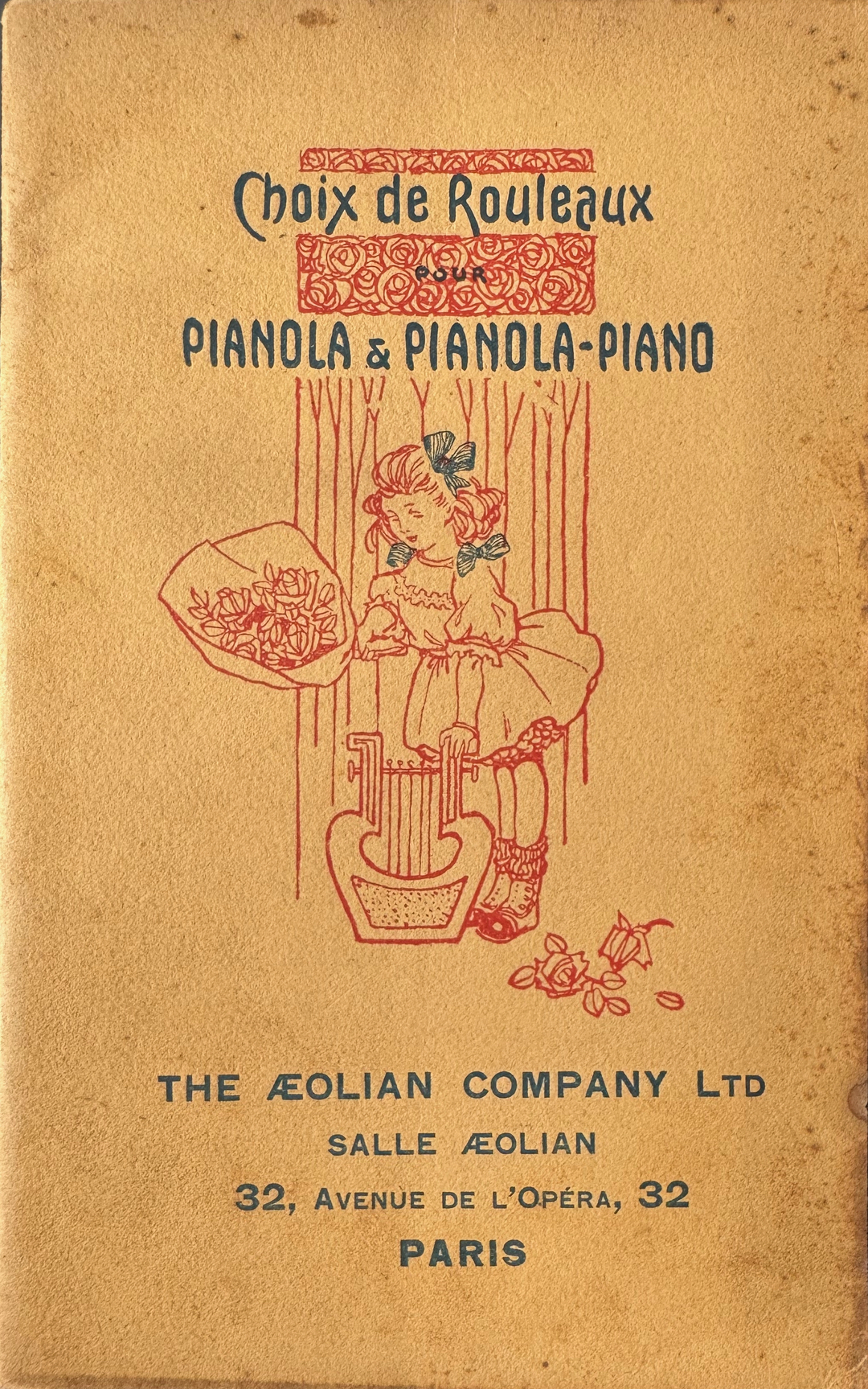 This is a French Aeolian Pianola catalog from probably 1910 for 65note music rolls. Listed is a selection of Metrostyle music rolls as well as dance music and accompaniment rolls - sorted by composer. This catalog has about 43 pages. We offer a pdf copy of this rare catalog for research purposes for EUR 35,00. If you are interested, please send us a request..