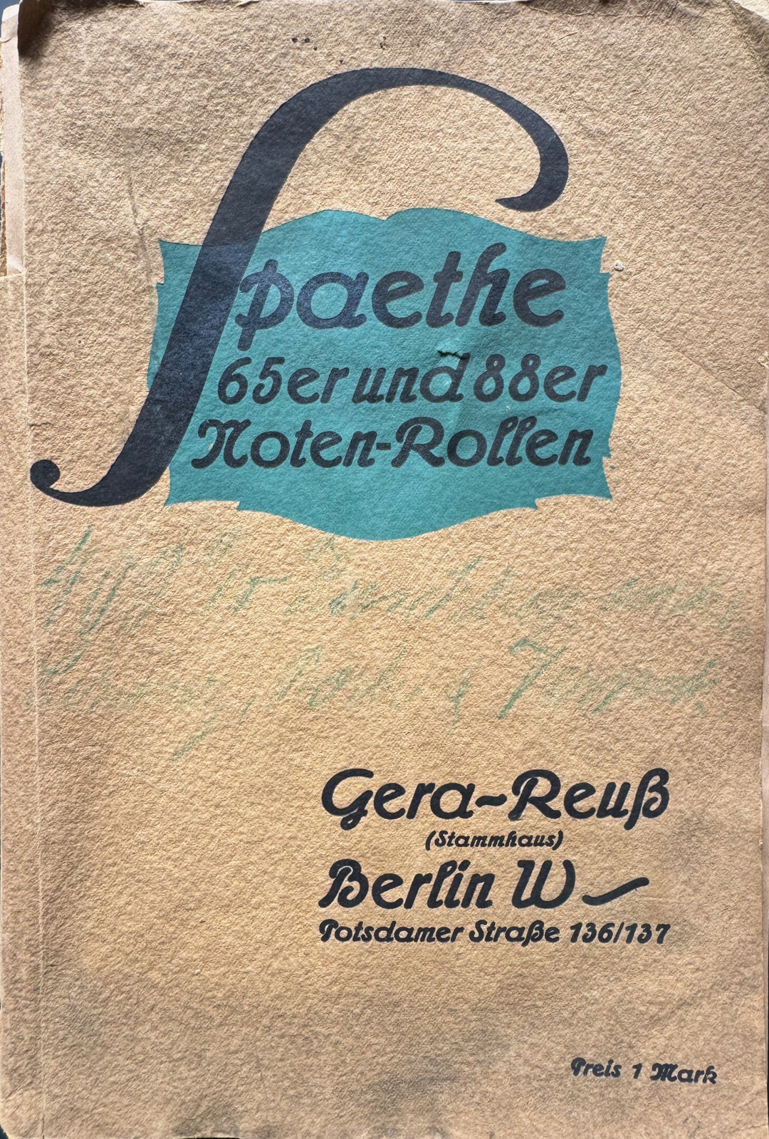 Der Klavierhersteller Wilhelm Spaethe aus Gera hat ein eigenes Spaethe Pianola und auch Notenrollen angeboten. Die Notenrollen sind jedoch nur selten zu finden. Gleichwohl sind die 65er und 88er Notenrollen von hoher Qualität. Die Spaethe Rollen wurden als ‚Gewöhnliche Rollen‘ und ‚Von Künstlern eingespielte Rollen‘ sowie mit Melodiebetonung und Pedal und ohne angeboten. Dieser Katalog aus ca. 1913 zeigt das große Repertoire bereits um diese Zeit. Ca. 280 Seiten hat dieser Katalog. Wir bieten eine pdf Kopie dieses seltenen Kataloges für Recherche und Forschung für EUR 60,00 an. Bei Interesse, please send us a request..