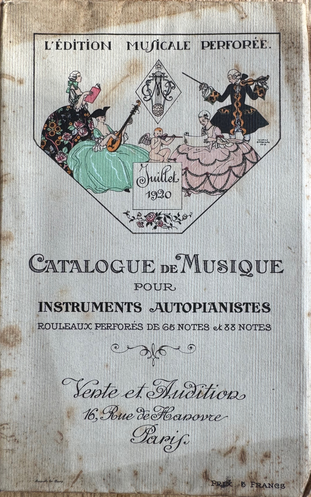 L'Édition Musical Perforée has also published a large music repertoire of music rolls. This catalog génerale has about 150 pages. At the beginning dance music rolls with texts are listed, followed by all music rolls sorted by composer. We offer a pdf copy of this rare catalog for research purposes for EUR 45,00. If you are interested, please send us a request..