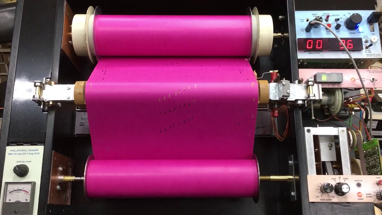 Hier ein Video einer pneumatischen DUCA Notenrollenleseeinrichtung zur Digitalisierung der originalen Notenrollen.