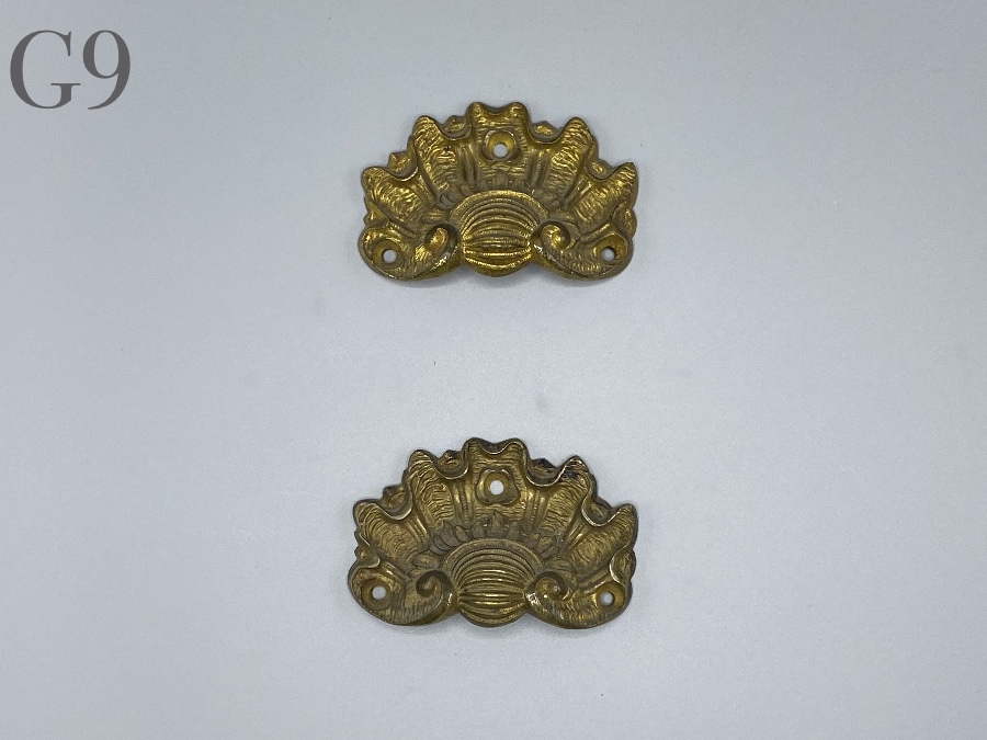 Diese Klaviergriffe mit der damals beliebten Muschelform stammen aus ca. 1870. Sie sind gut erhalten. Wie alle Klaviergriffe, sind auch diese nur zur Zierde, nicht zum Transport.