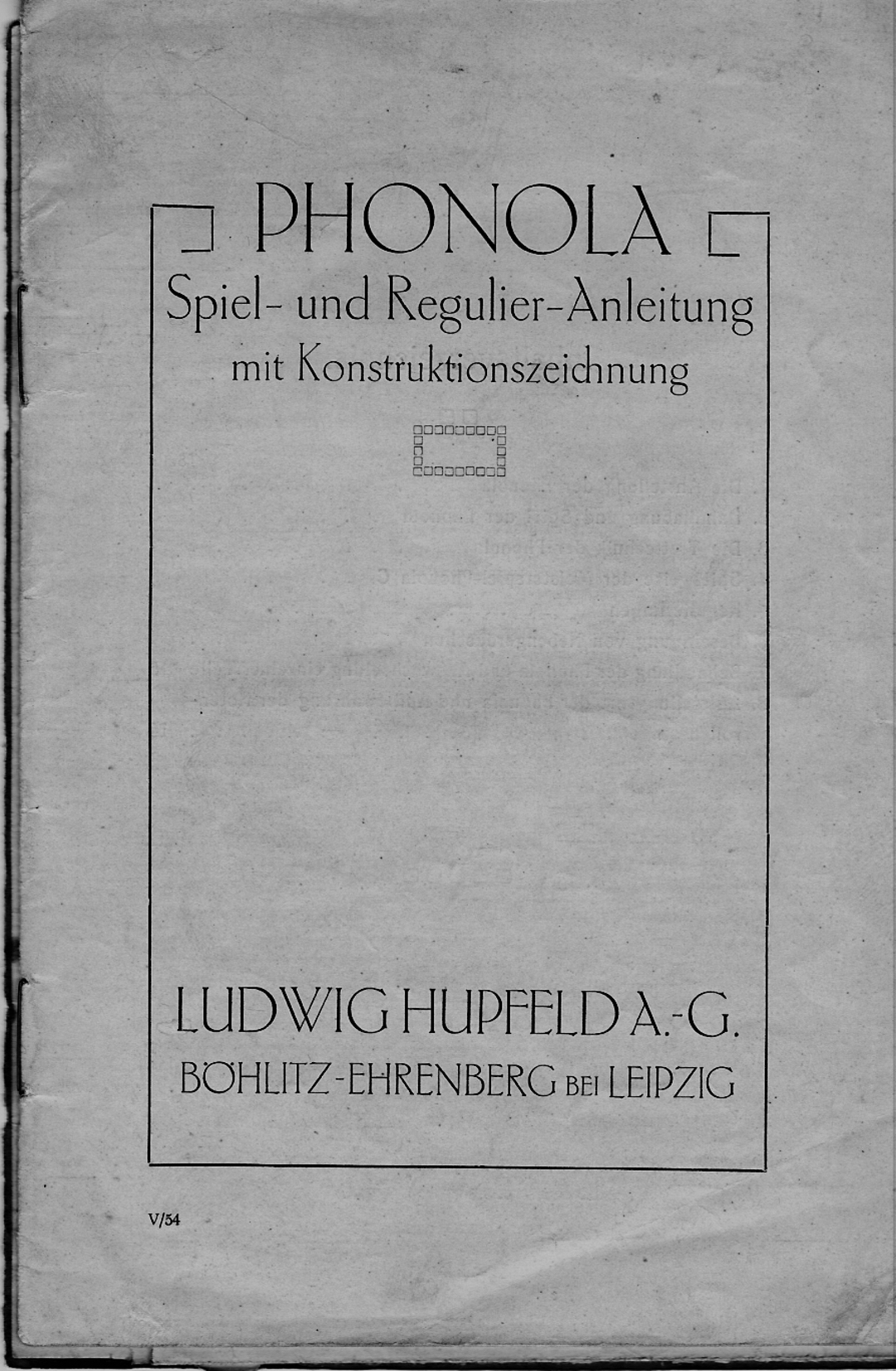 Angesicht der ungefähr Zwanzigtausend Phonola Vorsetzer, die verkauft wurden, ist es verwunderlich, dass diese ausführlichen Anleitungen so selten zu finden sind. Dies ist eine spezielle Anleitung für den Phonola Vorsetzer aus ca. 1909 mit Details zur Positionierung am Klavier oder Flügel, zur Spielweise, zur Behebung von Problemen und einer Konstruktionsskizze zum Aufbau. Format: ca. 18 Seiten. Wir bieten eine pdf Kopie dieses seltenen Dokumentes für Recherche und Forschung für EUR 35,00 an.