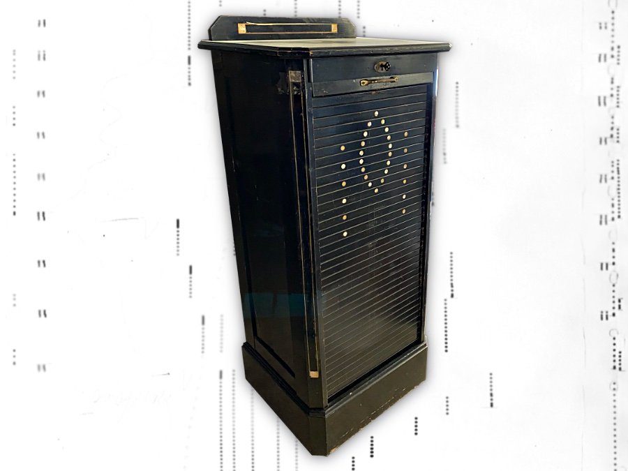 Dies ist ein schöner Hupfeld Notenrollenschrank aus ca. 1910. Er ist unrenoviert. Dieses Modell stand damals in den Aufnahmeräumen von Hupfeld in Leipzig.