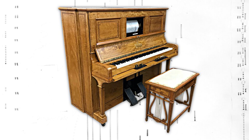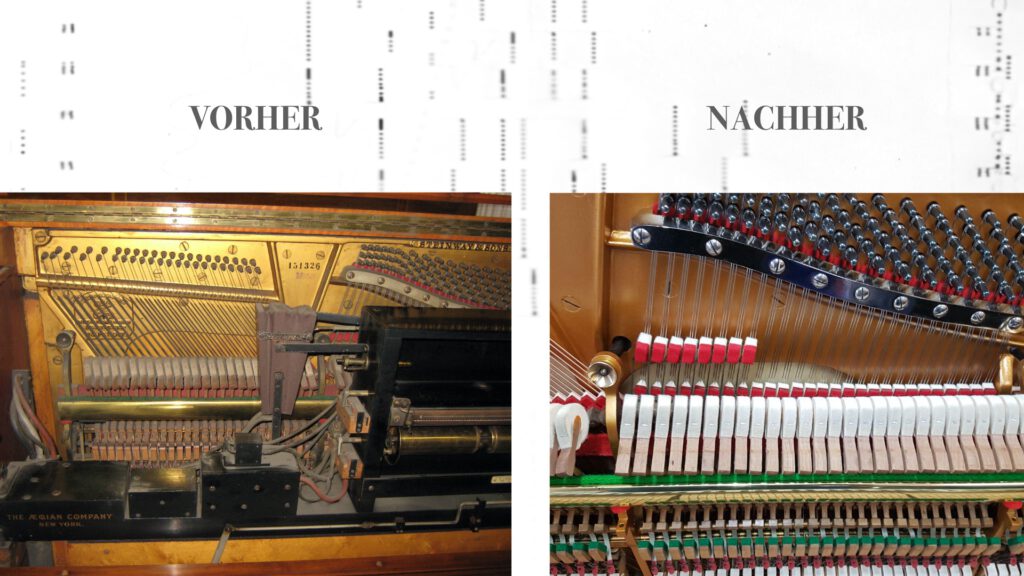 Hier ist ein Beispiel für ein seltenes Artcase Steinway & Sons Pianola Piano mit einer Aeolian 88er Standard Pianola Einrichtung. Dieses Piano war insgesamt original gut erhalten und zeigte nur normale Alterungs- und Nutzungsspuren. Ein Kunstwerk – die originale Artcase Pianola Bank. Wir haben die Aeolian Pianola komplett restauriert, das Steinway Piano wurde durch einen erfahrenen Klavierbaumeister restauriert und der Korpus inkl. der Pianolabank wurden aufgearbeitet.
