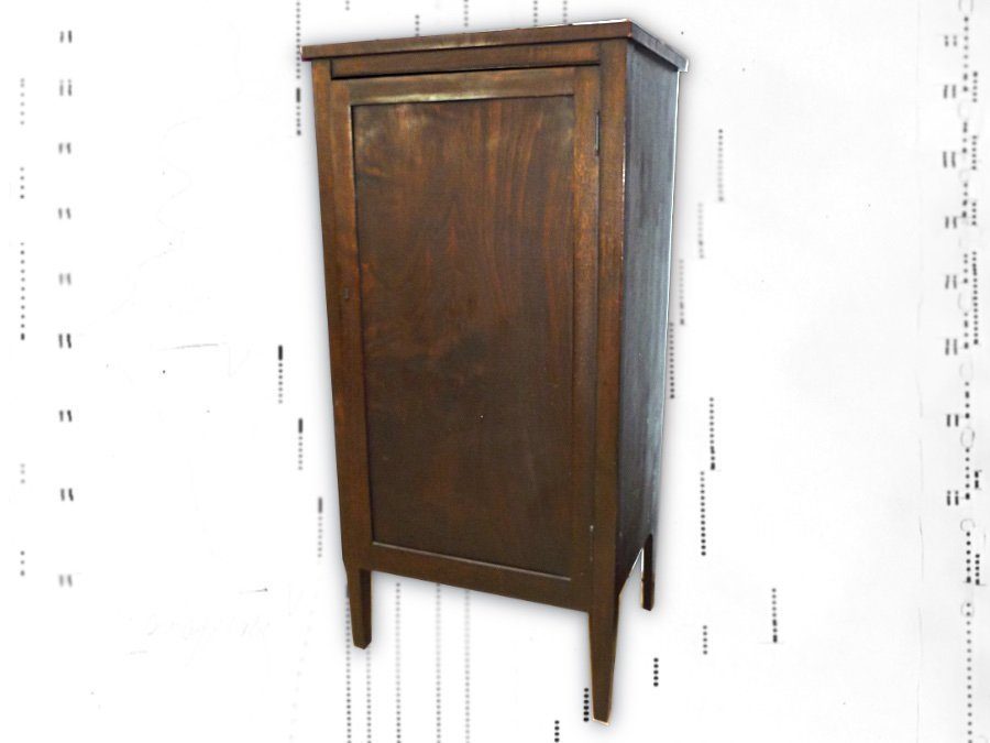 Dies ist ein schöner englischer Notenrollenschrank aus ca. 1910. Er ist unrenoviert gut erhalten. Höhe 1,2m, Breite 0,65m, Tiefe 0,45m. Er hat 10 Regale und bietet Platz für ca. 70 Notenrollen.