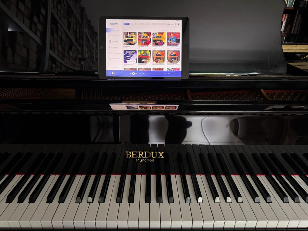 Dies ist ein moderner Selbstspielflügel mit PianoDisc Technologie. In den Berdux Flügel war ursprünglich das PianoDisc PDS-228CFX SymphonyPro Selbstspielsystem mit Diskette und CD integriert. Inzwischen haben wir das Pianodisc System mit einem Upgrade auf das aktuelle Prodigy II mit iPad Steuerung ausgestattet, d.h. Driver-Boards und CPU wurden erneuert. Er kann als normaler Handspielflügel und / oder als Selbstspielflügel genutzt werden. Ebenso kann das eigene Spiel aufgenommen und wiedergegeben – oder im Silentmodus gespielt werden. Äußerlich sieht man dem Flügel nicht an, dass er auch selbst spielen kann, da die Steuerung über das iPad erfolgt. Der Flügel ist mit wenigen Gebrauchs- und Alterungsspuren schön erhalten.